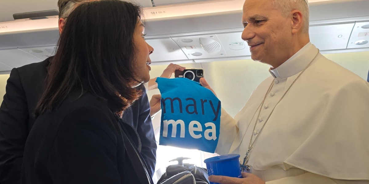 El Papa León XIV aterriza en África con una taza de Mary’s Meals en la mano